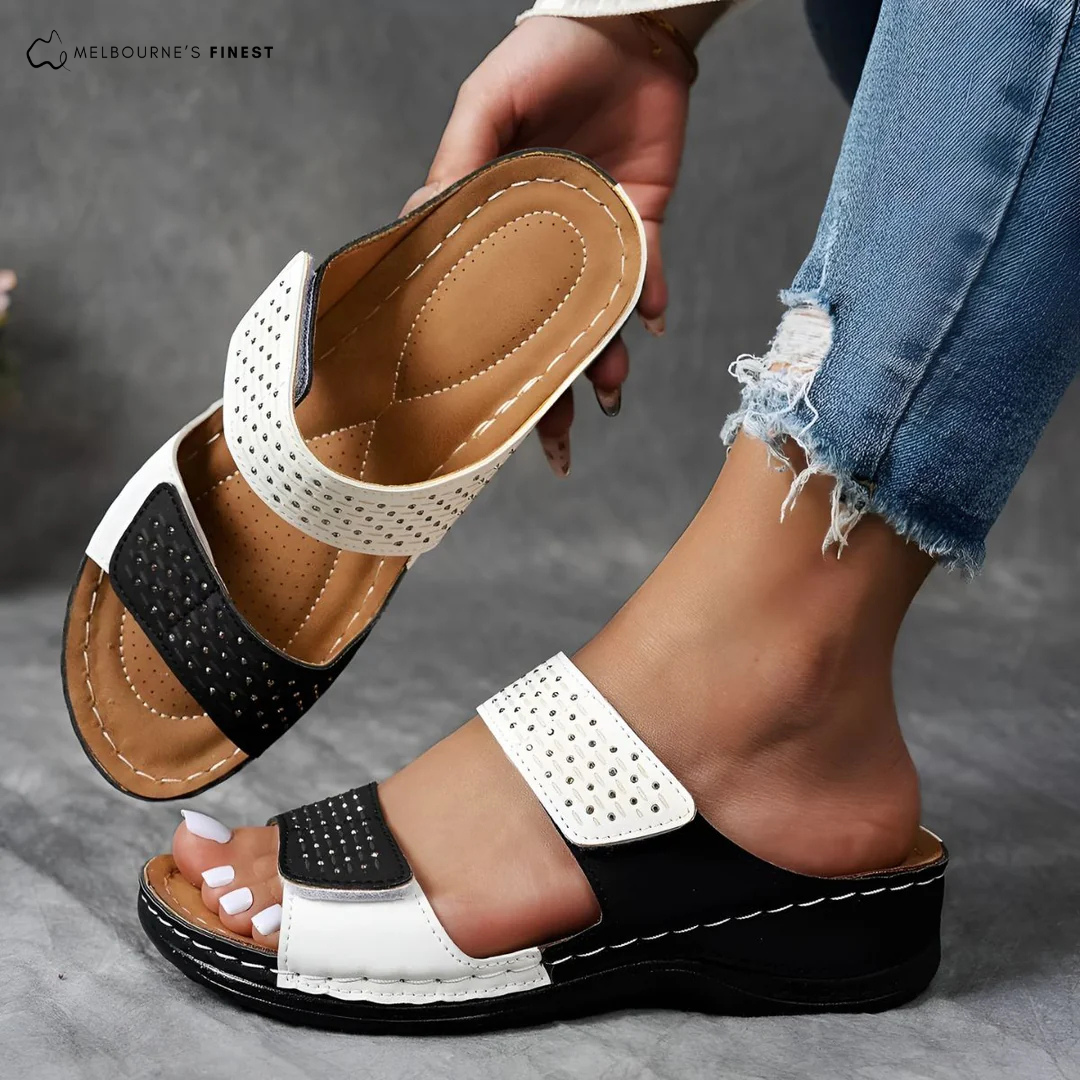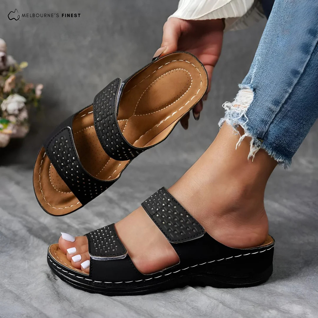 The Nina™ Orthopedic Comfort Sandals are specially designed to give your feet the perfect blend of all-day comfort, orthopedic support, and an adjustable fit that feels custom-made for you. These sandals reduce pressure, improve posture, and keep your feet feeling light and supported.